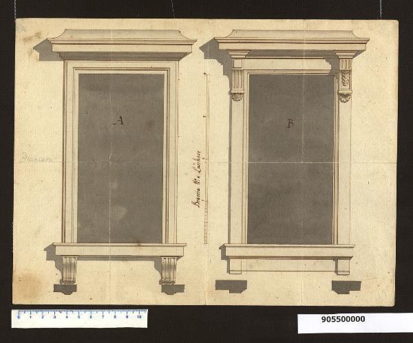Progetto con due varianti per le finestre della Villa Sardini a Pieve Santo Stefano. Prospetto di due finestre della Villa Sardini a Pieve Santo Stefano