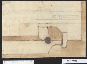 - NOTIZIE STORICO CRITICHE Il disegno, poco evidente in quanto predomina il disegno tracciato sul recto che traspare, sembra rappresentare uno studio per cerniera.