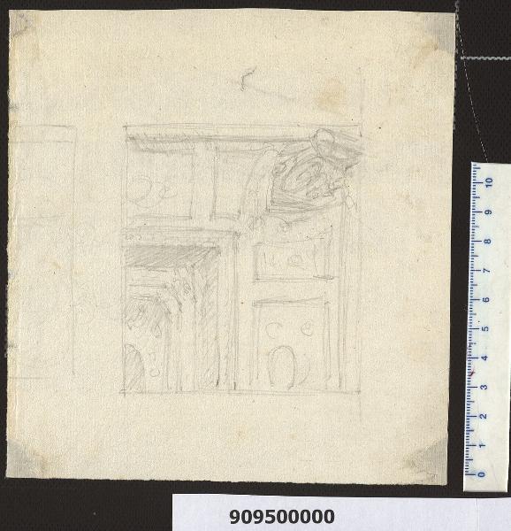 - NOTIZIE STORICO CRITICHE Il marchese Giacomo Sardini aveva messo su carta le proprie idee a proposito della decorazione del soffitto della sala principale nella villa a Pieve Santo Stefano (Milano, Collezione Sardini Martinelli inv. 9,92), per la cui ristrutturazione si era largamente avvalso di consigli e disegni inviatigli da Carlo Bianconi (ibidem, 9,54; 9,96; 9,86). Il pittore incaricato dell'esecuzione fu il non meglio noto Paolo Muzzarelli, il quale aveva annunciato in una lettera al marchese, spedita da Bologna il 15 settembre 1778, l'invio dei propri disegni per il soffitto (Archivio di Stato di Lucca, Archivio Sardini=AS, cart. 142, n. 674); il foglio in esame ed altri due conservati da Sardini sono verosimilmente riconducibili alla circostanza (Milano, Collezione Sardini Martinelli 9,83; 9,95). Il committente era arrivato a Muzzarelli grazie alla segnalazione di un corrispondente che sapeva di un precedente incarico per lavori "a uso Raffaello" eseguiti per il conte Zini (da leggere Gini) (AS, cart. 143, n. 859). Sardini, nelle proprie Memorie, attribuì erroneamente al pittore la qualifica di "accademico clementino": "Evvi colà una sala che avea io fatto ornare di stucchi a diversi riquadri di bugne con risalti di fasce e di cornici adattandole in questo modo alle pitture di grottesche sul gusto che dicesi di Raffaello. Esse furono concertate ed eseguite negli ornati dal bolognese Muzzarelli accademico clementino cui aggiunsi il nostro Bertani" (AS, n. 128, Memorie ... M. Teresa Sardini, c. 18). Muzzarelli, forse formatosi presso l'accademia bolognese, poteva essere imparentato con l'ornatista Giuseppe Muzzarelli segnalato dalla locale letteratura artistica (A. C. Romagnoli, La storia delle arti del disegno, Bologna 1888, p. 111). Il modello di riferimento della decorazione pittorica che aveva guidato le scelte di Sardini viene anche ribadito negli scritti del suo amico Tommaso Trenta: "L'esquisito gusto, e l'eleganza degli ornamenti congiunta ad una sorprendente vivacità di colorito formano il carattere del sig. Muzzaroli; imitatore felicissimo delle non mai abbastanza lodate Volte del Vaticano" (Archivio di Stato di Lucca, Carte Trenta, vol. 16, fasc. 31, c. 336). Il foglio in esame insieme agli altri due citati studi di Muzzarelli mostrano il tentativo, da parte del pittore, di suggerire una decorazione centrale di sagoma ovale, in parte apparentata con l'idea di Bianconi (Milano, Collezione Sardini Martinelli inv. 9,86), ovali però da affiancare con ulteriori campiture decorative.\nLa villa fu demolita intorno al 1930.