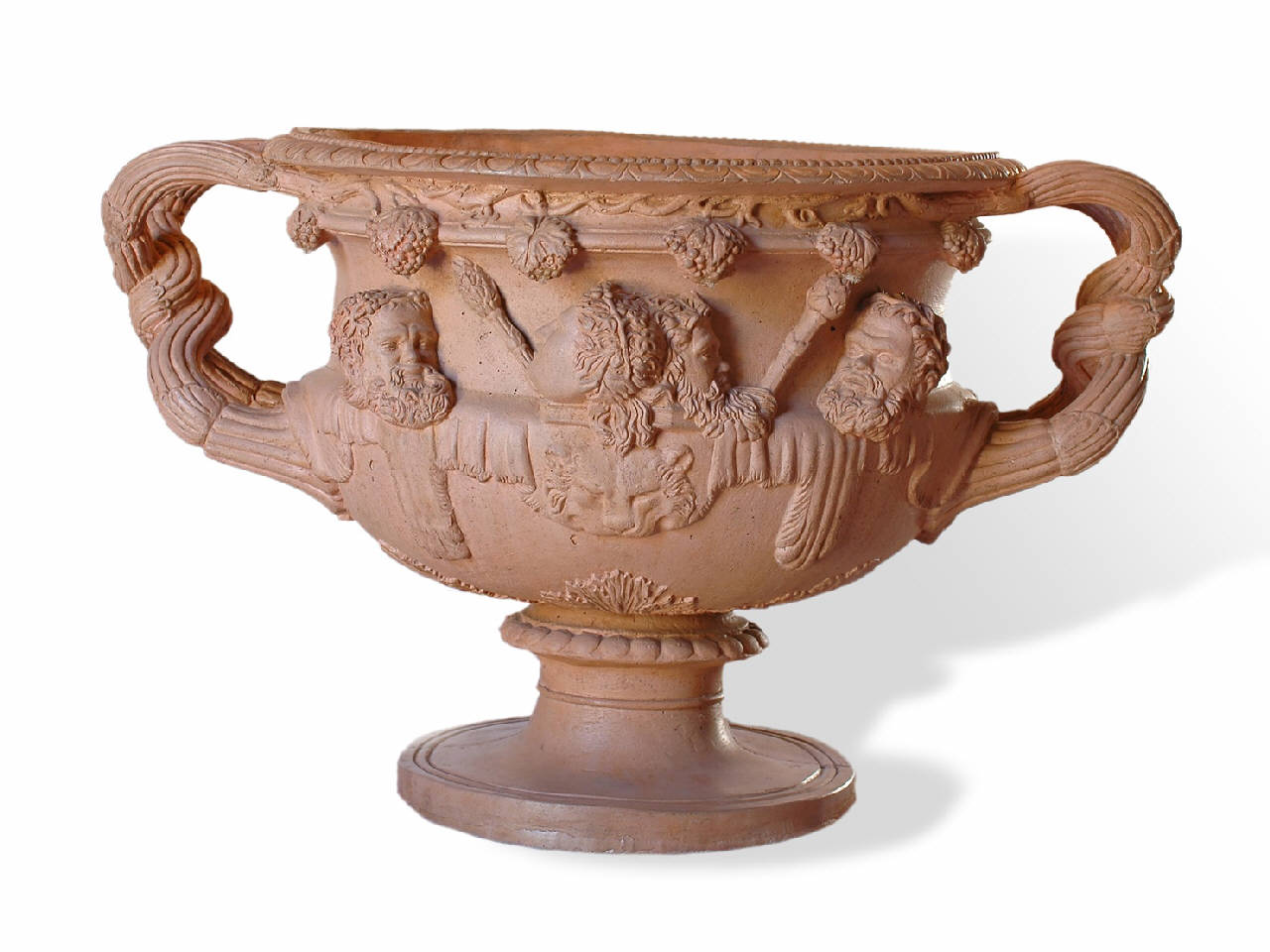 - NOTIZIE STORICO CRITICHE Il cratere è simile al celebre cratere attico del II secolo d. C. appartenuto ai Lante della Rovere ed esposto nella villa omonima sul Gianicolo.\nSul catalogo d'Asta Sotheby's del 5 marzo 2003 (Euro 3.000-5.000), è indicato come "Vaso Warwick in terracotta dall'antico". Il vaso Warwick, oggi nei musei di Glasgow, venne ritrovato a Villa Adriana nel 1770. Fu restaurato e completato da Giovan Battista Piranesi e divenne modello per i lapicidi romani, come Boschetti, per i bronzisti napoletani e per gli argentieri inglesi, tra i quali Paul Storr (vedi A.Gonzàles-Palacios, Il Tempio del Gusto, Milano 1984, tomo I, p. 124, tomo II, figg. 215-217).