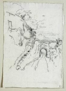 - NOTIZIE STORICO CRITICHE Il disegno fa parte di un insieme, con numeri di inventario da 5008 a 5026, conservati da Riccardo Lampugnani in una cartelletta di cartone con etichetta che reca l'iscrizione a penna "Luigi Bertelli 20 disegni originali" e, sempre a penna: "1852-1916, e altri". I disegni pevenuti al museo Poldi Pezzoli sono 19. Il disegno mancante è documentato da una foto nell'Album "D 15" e rappresenta una piccola figura femminile davanti a un albero. Nello stesso Album è conservata una foto in b/n del presente disegno. La datazione post quem proposta indica il periodo tardo dell'attività di Bertelli, caratterizzato dallo studio dal vero (prediletto dall'artista) del paesaggio reso con un tratto sintetico in una impaginazione di ampio respiro che spesso presenta un punto di vista lontano e rialzato.