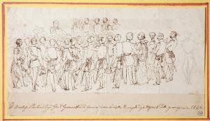 - NOTIZIE STORICO CRITICHE La caratterizzazione dei volti di tutti i personaggi rappresentati, insieme all'iscrizione, indicano che il disegno raffigura in presa diretta un episodio del periodo risorgimentale.