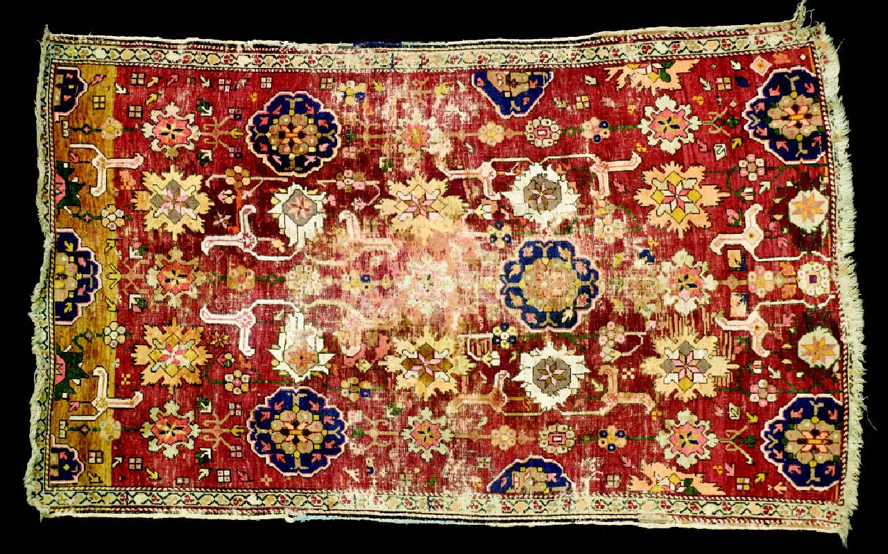 - NOTIZIE STORICO CRITICHE Questo esemplare è ispirato ai modelli floreali del XVII secolo. \nI tappeti caratterizzati da questo tipo di decorazione sono assegnati all'area di Kuba (Caucaso nord orientale). Eskenazi non concorda con tale abitudine attributiva e preferisce riferirli allo Shirvan orientale e più precisamente all'area di Baku, importantissimo centro commerciale situato a sud della penisola di Apsheron.