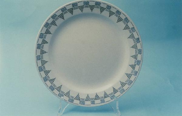 - NOTIZIE STORICO CRITICHE Nell'iscrizione a tergo, abitualmente usata come contrassegno per servizi, viene indicato il numero dello stampo utilizzato per riprodurre il decoro. Privo di effetti luministici e tridimensionali, il motivo vegetale in esame indica una datazione alla metà del Nocevento. In quel periodo la produzione della S.C.I. era caratterizzata dalla continua ricerca di una forma semplice e funzionale e di una decorazione in linea con il pezzo.