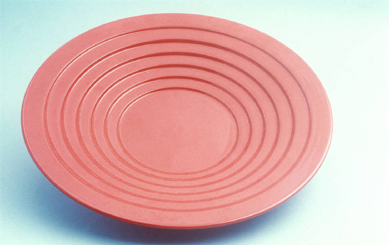 - NOTIZIE STORICO CRITICHE La foggia moderna e funzionale del manufatto e il colore rosso uniforme fanno dell'oggetto un prodotto di design databile alla seconda metà del Novecento. La tesa gradinata ricorda quella di alcuni vasi realizzati da Guido Andlovitz negli anni '30 del Novecento e conservati a Laveno. Nel museo si trova un altro oggetto simile nella variante marrone (num. inv. 1549) prodotto sempre dalle Ceramiche Pareschi.