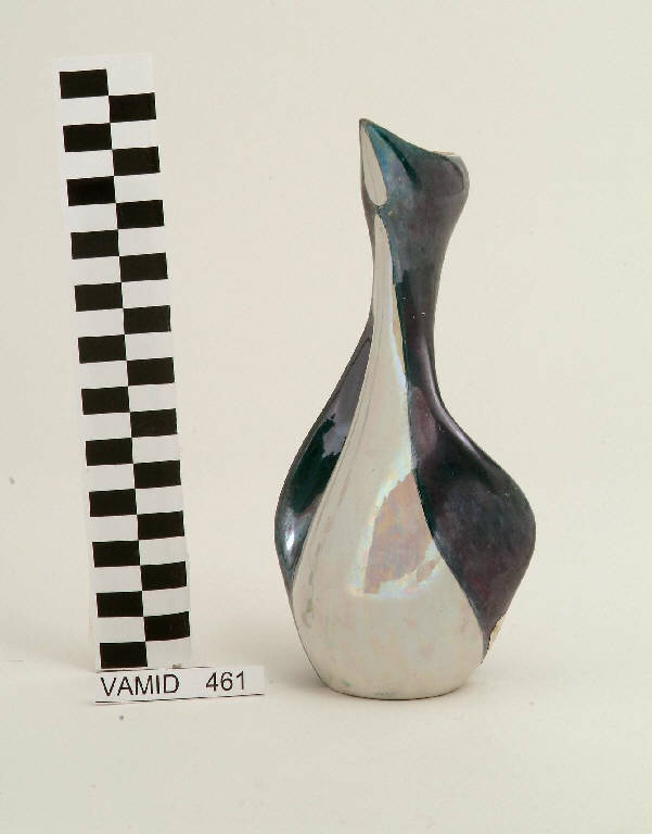- NOTIZIE STORICO CRITICHE Come riporta il Peregalli, l'oggetto in esame venne realizzato dalla Ceramica Forlani intorno al 1959, quando era sita in via Cesare Battisti a Laveno Mombello. La forma del manufatto è stata ripresa dal vaso, denominato "C. 5 ", eseguito da Antonia Campi in varie coloriture a monocromo e in bicromia nell'ambito degli "articoli di fantasia". Il primo oggetto progettato dalla Campi per la produzione in serie fu inviato al concorso di Faenza del 1949 in una versione con una smaltatura monocroma in marrone e fu subito accolto nelle collezioni dela Museo internazionale delle ceramiche. Il vaso in esame fa parte di una donazione fatta al museo nel 1992.