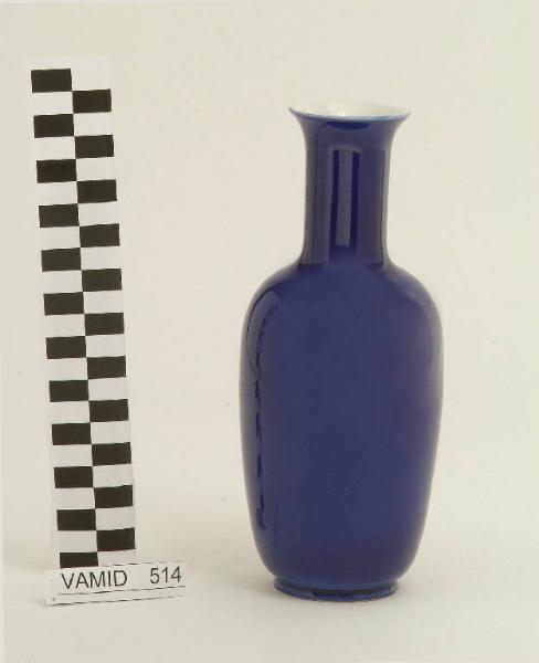 Vaso dal corpo globulare con lungo collo; fondo blu cobalto; bianco internamente.