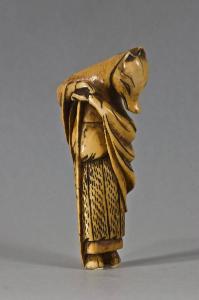 - NOTIZIE STORICO CRITICHE Molti netsuke che raffigurano questo episodio mostrano Hyakuzosu con il volto di volpe e abiti monacali; in altri casi a questo personaggio si affianca un contadino; altre volte è rappresentato il momento esatto della trasformazione da volpe a uomo. Composizioni analoghe caratterizzano netsuke del XVIII e XIX secolo: il nostro è di una certa qualità, databile tra la fine del Settecento e l'inizio dell'Ottocento.