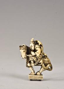 - NOTIZIE STORICO CRITICHE Composizioni simili caratterizzano un certo numero di netsuke, per lo più datati al XIX secolo. Anche questo esemplare sembra potersi datare alla metà dell'Ottocento. Nonostante alcuni elementi - come l'intaglio caratterizzato da una certa potenza, la semplice efficacia dell'inchiostratura di alcuni dettagli e la patinatura che ammorbidisce e illumina i tratti della scena - siano tipici della produzione settecentesca, il presente manufatto si piuò considerare come un netsuke-okimono piuttosto che un vero e proprio netsuke, soprattutto per la presenza del basamento, le cui spigolature mal si adattano al contatto con la delicatezza del tessuto di un abito con il quale il pezzo sarebbe dovuto rimanere in contatto.