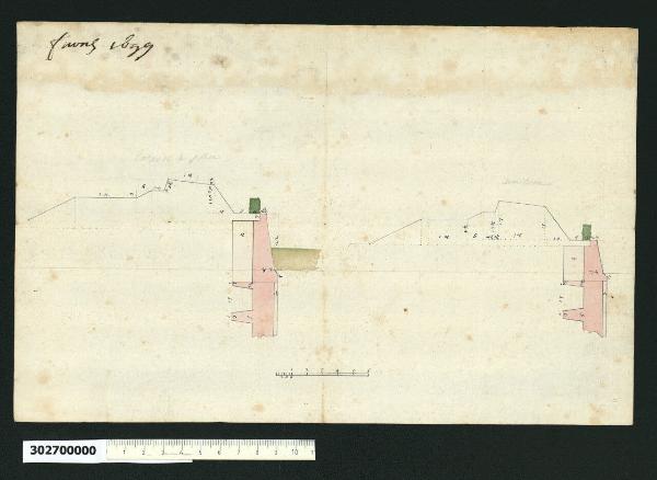 - NOTIZIE STORICO CRITICHE Nell'"Indice" del tomo nel quale era rilegato il disegno viene definito: "Spaccato di luogo fortificato".\nIl disegno illustra due dettagli quotati di un sito fortificato e le parti rappresentate, secondo le iscrizioni a grafite che si intravedono in corrispondenza, sono il "corp de la place" (controguardia) e la "demilune" (mezza luna). \nL'indice di Sardini non specifica il luogo e anche l'iscrizione poco leggibile graficamente, ma che sembra essere la data "giune 1699", potrebbe ugualmente indicare sia il periodo di edificazione del manufatto, sia il momento di esecuzione dell'elaborato grafico. \nDai confronti effettuati sembra comunque trattarsi della fortezza di Neuf-Brisach, città costruita tra il 1698 e il 1706 dal maresciallo francese Sébastien Le Prestre de Vauban (1633-1707), ingegnere militare al servizio di Luigi XIV (la storia della città è riportata nella scheda del disegno in Milano, Collezione Sardini Martinelli inv. 3,26). L'attribuzione del soggetto è suffragata non solo dall' analogia grafologica delle quote con il disegno che rappresenta il profilo della torre bastionata della cittadina (Milano, Collezione Sardini Martinelli inv. 3,26) ma soprattutto dalla rappresentazione dello stesso profilo, indicato come appartenente alla controguardia di fronte alla torre bastionata di Neuf-Brisach, pubblicata nel trattato di Bernard Belidor, "La Science des Ingegneurs dans la conduite des travaux de fortification", edito a Parigi nel 1729 (voll. IV e VI) e in quello di Louis de Cormontaigne, Architecture militare, ou L'art de fortifier,…, edito a La Haye, nel 1741. \nLe fortificazioni di Neuf-Brisach sono un esempio di applicazione del terzo sistema (ordine rinforzato) di Vauban, che prevede una serie di difese in profondità: la cinta muraria, o cortina principale, in cui sono inserite le torri bastionate è circondata da un primo fossato, oltre cui si trovano alternati una tenaglia (di fronte ai lati dell'ottagono) e una controguardia (di fronte alle torri bastionate poste sui vertici dell'ottagono). Un secondo fossato circonda questo sistema, oltre il quale sono situati alternativamente: di fronte alle tenaglie prive di attraversamenti, delle mezzelune circondate da un fossato e di fronte alle tenaglie attraversate dai ponti di ingresso alla città, dei rivellini protetti da mezzelune, pure circondati da fossati. La strada coperta al di là dei fossati segue tutto il perimetro esterno della fortificazione. Le scarpate sono contrastate da una controscarpa in muratura evidenziata nel disegno con acquerello rosa. Una siepe protegge dalla vista nemica il passaggio tra il terrapieno e la controscarpa. \nHelmutt Lorenz indica che la tecnica grafica potrebbe essere quella di Domenico Martinelli, ma la data di realizzazione del progetto è posteriore all'epoca in cui l'architetto lucchese effettuò studi di macchine e fortificazioni nel nord dell'Europa (1695-98). Potrebbe quindi aver acquisito successivamente il disegno nella sua collezione.\nL'analisi calligrafica delle quote porta invece ad associarlo al disegno in pianta delle torri bastionate (Milano, Collezione Sardini Martinelli inv. 3,26), che sembra a sua volta appartenere a una serie di elaborati stilisticamente affini (ibidem invv. 3,33; 3,34; 3,35; 3,36).