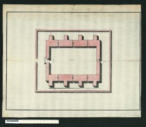 - NOTIZIE STORICO CRITICHE Nell'"Indice" del tomo nel quale era rilegato il disegno viene definito: "Darsena". Il soggetto indicato da Giacomo Sardini non corrisponde in realtà a quello rappresentato nel disegno, in quanto si tratta di un magazzino di polveri da sparo ideato da Sébastien Le Prestre de Vauban - ingegnere al servizio del re di Francia Luigi XIV tra il 1655 e il 1707 - schematizzato in una pianta sezionata prima della copertura per mostrare l'impianto tipologico dell'edificio.\nNon vi sono certezze sull'esecutore del disegno, che tuttavia sembra associabile a Vauban o a qualche suo stretto collaboratore e, per analogia stilistica, ad altri disegni presenti nella Collezione (Milano, Collezione Sardini Martinelli invv. 3,26; 3,27; 3,32; 3,33; 3,34 e 3,35).\nQuesto disegno è stato successivamente riprodotto, insieme alla sezione dell'alzato, nel trattato di Bernard Belidor "La Science des Ingegneurs dans la condite des travaux de fortification", edito a Parigi nel 1729 (vol. IV, cap. IX, tav. 27 fig. 2a, pp. 67-69 ), dove è specificato che si tratta del "Plan d'un magazin a poudre selon M.r le Ma.l de Vauban". Belidor ebbe probabilmente grande accessibilità ai disegni di Vauban, che prese come modello principale nell'esporre i principi riguardanti le opere militari all'interno del suo trattato (Blomfield, 1971 p. 52). In particolare diversi sono i riferimenti alla fortezza di Neuf-Brisach, l'ultima e più complessa opera realizzata da Vauban tra il 1698 e il 1706, poco prima della sua morte.\nNel suo trattato Belidor offre una descrizione dettagliata di arsenali e magazzini per la polvere da sparo secondo il modello di Vauban e forse quello rappresentato nel disegno potrebbe far parte proprio del progetto per Neuf-Brisach.\nIl magazzino è protetto lungo il perimetro da un recinto in muratura di forma rettangolare con un'unica apertura. La struttura perimetrale dell'edificio è costituita da murature di forte spessore, che sui fianchi longitudinali presentano possenti contrafforti, per poter sostenere - come si rileva dalla sezione in alzato riprodotta da Belidor - una grande volta in mattoni protetta da una copertura a doppia falda.\nLa competenza di Vauban in fatto di fortificazioni e opere militari, è comprovata dall'ingegnosità della concezione delle aperture: a metà dell'intervallo tra un contrafforte e l'altro si sussegue una serie di fessure particolarmente congegnate per dare aria ai magazzini, ma nello stesso tempo impedire a malintenzionati di gettare all'interno mezzi incendiari per far saltare il magazzino.\nAl centro dei due lati trasversali si trovano rispettivamente l'ingresso e una finestra alta impostata appena sotto la volta.\nUn magazzino per polvere da sparo quasi identico ("à la Vauban") fu realizzato intorno al 1729 a Fort Manoel a Malta.