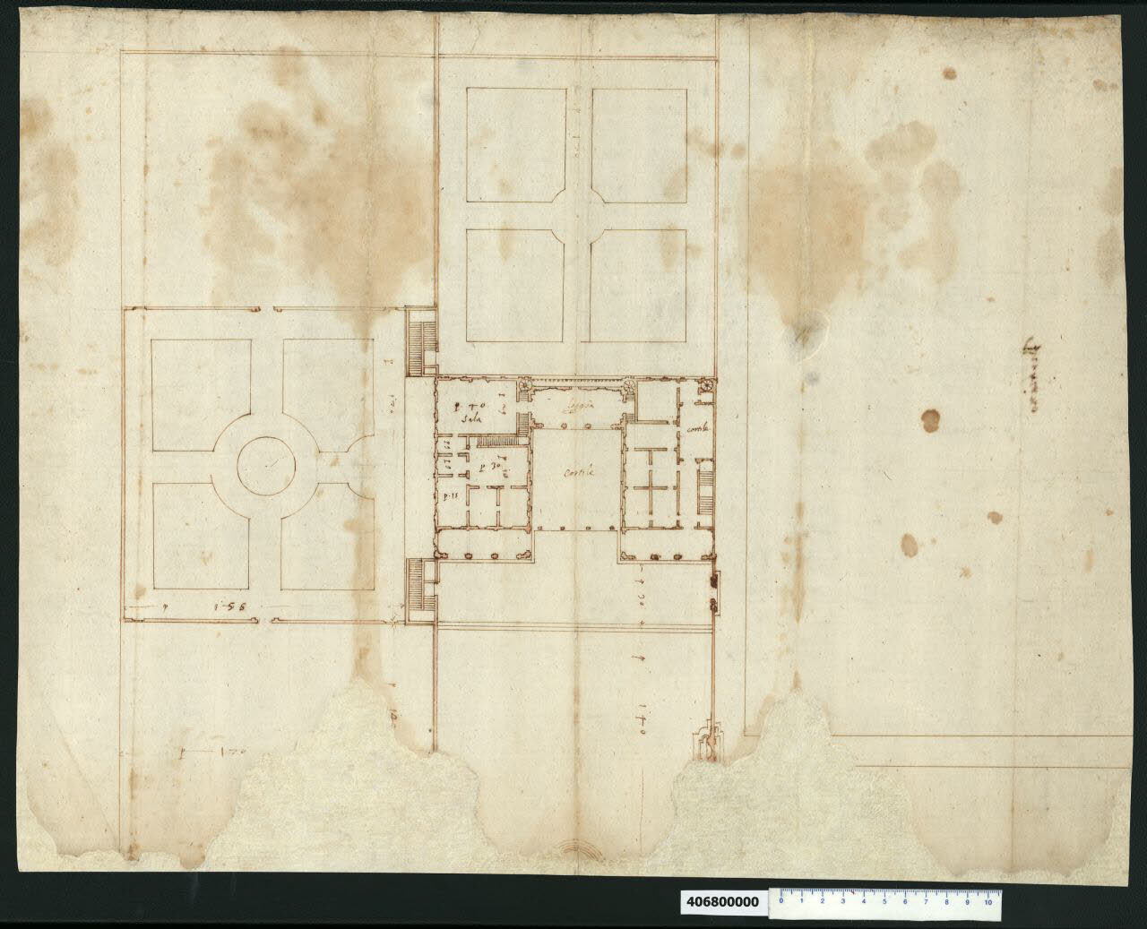 - NOTIZIE STORICO CRITICHE Nell'"Indice" del tomo nel quale era rilegato, il disegno viene definito: "Villa di Barbiano di Bologna".\nSi tratta di una copia di Domenico Martinelli di un disegno attualmente conservato nel fondo Mascherino dell'Accademia di S. Luca a Roma. La scheda di catalogo dell'Accademia (n. 2529) lo assegna a Ottaviano Mascherino, lo identifica con la villa Guastavillani a Barbiano e lo data al 1574. La villa fu costruita dal cardinale Filippo Guastavillani, nipote di Gregorio XIII, a partire dal 1575. Sono numerose le proposte di Mascherino per questa villa e tra queste ve n'è una identica a quella raffigurata nel presente disegno. L'edificio si sviluppa in due corpi di fabbrica disposti simmetricamente lungo due lati della corte e raccordati da una loggia a tre arcate, analoga a quelle poste in prossimità dell'ingresso. Attorno alla villa sono disegnati due ampi giardini organizzati con viali ortogonali e aiuole geometriche. (cfr. anche Milano, Collezione Sardini Martinelli inv. 4,69).\nAnche questo disegno rientra nella sfera di attività del Martinelli dedicata alla riproduzione di progetti ideati da altri architetti quali Giovanni Antonio e Mattia De Rossi.