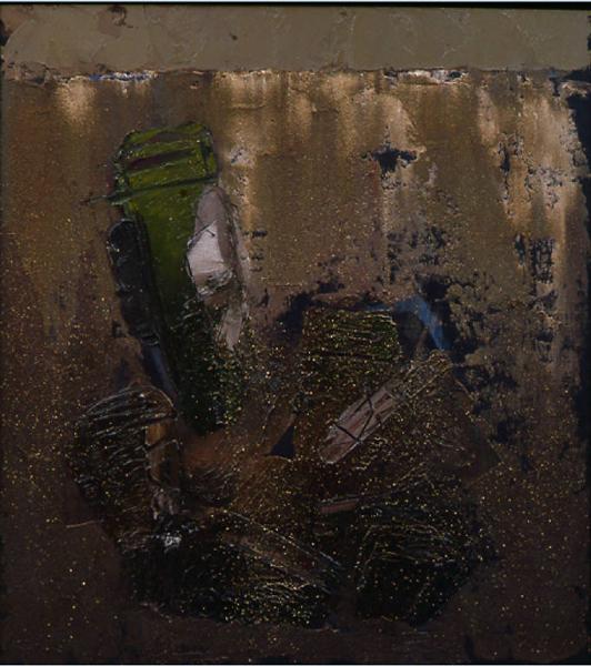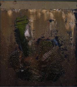 - NOTIZIE STORICO CRITICHE Verso la fine delle serie, i dipinti del treno distrutto perdono alcuni elementi caratteristici, come, in questo caso, la striscia rossa di automobili che separa la fascia del cielo dalla massa della voragine sottostante. Il risultato è una pittura più composta e uniforme, ormai priva dei segni agitati con cui erano stati dipinti i primi esmplari. Si può anche osservare qui un recupero del disegno che rende più leggibili le forme delle carrozze, dipinte utilizzando anche il colore verde e la polvere d'oro anziché i soliti neri che ne evidenziavano la combustione.