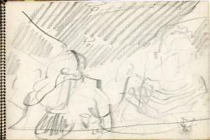 - NOTIZIE STORICO CRITICHE Congdon si è raramente dedicato al disegno come forma espressiva autonoma, così la mole di disegni raccolti sui taccuini non sono altro che appunti visivi presi durante numerosi viaggi. In questo senso non è possibile, se non raramente, assegnare al singolo disegno un'opera finita direttamente corrispondente, così questi disegni non vengono nemmeno ad essere schizzi preparatori. La sommatoria di tutti i disegni relativi a un luogo danno origine a una serie di dipinti che non hanno un corrispettivo oggettivo nei disegni stessi. Tutto questo giustifica la presenza degli appunti all'interno delle immagini (colori, sfumature e spiegazioni di vario genere). Le città marinare sono nei taccuini di Congdon uno dei soggetti più presenti, data la sua abitudine di viaggiare in nave. Qui si sofferma nella descrizione dei posti più significativi da un punto di vista storico artistico ma non disdegna i dettagli quotidiani delle folle dei turisti come dei risvolti più privati che incontra nel suo soggiorno. Conosciamo così i dettagli dell'arredo degli interni (dal bar alla stanza d'albergo). Nei disegni veneziani il tratto si fa particolarmente ricco per arrivare a descrivere tutti gli archi di piazza San Marco, il brulichio delle folle viste dall'alto a passeggio sulle rive del canal grande ecc ecc. fino alle fantasie fiorate dei vestiti delle signore ai tavolini del bar. Le stanze d'albergo, qui come in altri taccuini, non possono non riportare alla memoria gli interni di Matisse, tanto dettagliati nella ricchezza di particolari da diventare un unico lavorio di superficie.