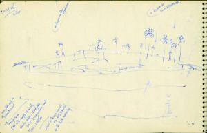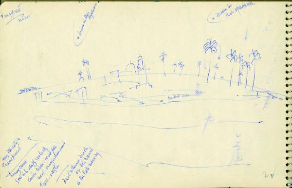 - NOTIZIE STORICO CRITICHE Congdon si è raramente dedicato al disegno come forma espressiva autonoma, così la mole di disegni raccolti sui taccuini non sono altro che appunti visivi presi durante numerosi viaggi. In questo senso non è possibile, se non raramente, assegnare al singolo disegno un'opera finita direttamente corrispondente, così questi disegni non vengono nemmeno ad essere schizzi preparatori. La sommatoria di tutti i disegni relativi a un luogo danno origine a una serie di dipinti che non hanno un corrispettivo oggettivo nei disegni stessi. Tutto questo giustifica la presenza degli appunti all'interno delle immagini (colori, sfumature e spiegazioni di vario genere). Nei disegni del Sahara del '55 Congdon si affida a un'economia di segni impostata sull'orizzonte spesso alto che lascia libera grande parte dello spazio bianco del foglio come a cercare l'effetto di una luminosità diffusa e abbagliante.