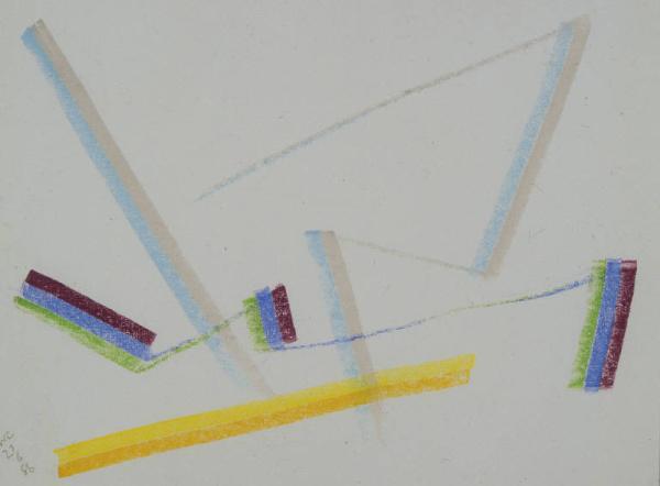 - NOTIZIE STORICO CRITICHE Il paesaggio marino della riviera adriatica, dove Congdon negli anni Ottanta era solito trascorrere le sue estati, subiscono lo stesso trattamento del paesaggio agreste della Bassa milanese. A partire dalle prime vedute più descrittive, lo scenario costiero si riduce a una partitura segnica di elementi che nell'ormai consueta sintesi di un solo tratto descrivono le componenti del paesaggio: sole, cielo, mare, spiaggia. Questi elementi chiave vengono così riassunti in un solo segno che diventa la traccia luminosa di ciò che rappresenta. Il resto della composizione, il senso spaziale e atmosferico della stessa, è affidato al colore del supporto stesso che viene ravvivato dai segni ortogonali, curvi o obliqui che lo percorrono.