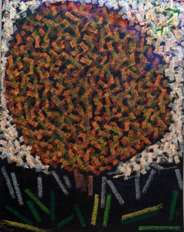 - NOTIZIE STORICO CRITICHE Il brulichio di linee spezzate, intrecciate e sovrapposte, diventa in una parte dei pastelli il motivo dominante che riempie quasi come in una composizione all over la totalità del foglio. Il senso di profondità, che evita la bidimensionalità pura, è dato dall'emergere fra gli spazi del fondo del supporto. A volte predomina lo studio di un elemento del paesaggio, ma più spesso l'intreccio di segni rimane organizzato in masse che rendono più leggibili gli scenari in senso naturalistico: si distinguono, ancora, i campi, il cielo, un albero oppure un cespuglio...