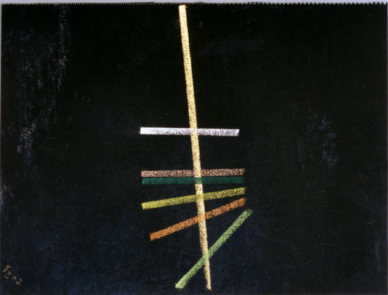 - NOTIZIE STORICO CRITICHE L'osservazione inesausta e quotidiana del paesaggio antistante lo studio trova nei pastelli, rispetto alla pittura, una via rappresentativa del tutto particolare. Gli elementi del paesaggio vengono infatti ridotti all'estremo fino a portare la composizione ad un'apparente astrazione. Tuttavia è possibile riconoscere quegli stessi elementi che caratterizzano i paesaggio della Bassa milanese anche più descrittivi: cielo, terra, canale e filare di alberi. Questi elementi chiave vengono riassunti in un solo segno che diventa la traccia luminosa di ciò che rappresenta. Il resto della composizione, il senso spaziale e atmosferico della stessa, è affidato al colore del supporto stesso che viene ravvivato dai segni ortogonali, curvi o obliqui che lo percorrono.