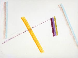 - NOTIZIE STORICO CRITICHE Il paesaggio marino della riviera adriatica, dove Congdon negli anni Ottanta era solito trascorrere le sue estati, subiscono lo stesso trattamento del paesaggio agreste della Bassa milanese. A partire dalle prime vedute più descrittive, lo scenario costiero si riduce a una partitura segnica di elementi che nell'ormai consueta sintesi di un solo tratto descrivono le componenti del paesaggio: sole, cielo, mare, spiaggia. Questi elementi chiave vengono così riassunti in un solo segno che diventa la traccia luminosa di ciò che rappresenta. Il resto della composizione, il senso spaziale e atmosferico della stessa, è affidato al colore del supporto stesso che viene ravvivato dai segni ortogonali, curvi o obliqui che lo percorrono.