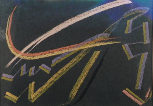 - NOTIZIE STORICO CRITICHE L'osservazione inesausta e quotidiana del paesaggio antistante lo studio trova nei pastelli, rispetto alla pittura, una via rappresentativa del tutto particolare. Gli elementi del paesaggio vengono infatti ridotti all'estremo fino a portare la composizione ad un'apparente astrazione. Tuttavia è possibile riconoscere quegli stessi elementi che caratterizzano i paesaggio della Bassa milanese anche più descrittivi: cielo, terra, canale e filare di alberi. Questi elementi chiave vengono riassunti in un solo segno che diventa la traccia luminosa di ciò che rappresenta. Il resto della composizione, il senso spaziale e atmosferico della stessa, è affidato al colore del supporto stesso che viene ravvivato dai segni ortogonali, curvi o obliqui che lo percorrono.