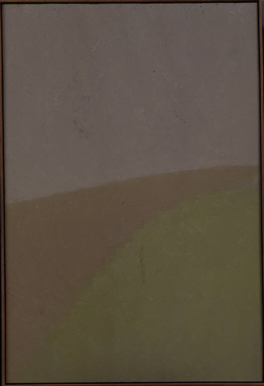 - NOTIZIE STORICO CRITICHE La tradizionale divisione del dipinto in due zone è qui piuttosto una delicata fusione di toni altrettanto tenui e vibranti di luce, il rosa-lilla chiaro della parte superiore e il verde e marrone che, dal basso, sembrano a poco a poca invaderlo. Si può riconoscere un'incerta linea divisoria che corre obliquamente lungo la composizione, conferendole un carattere dinamico. Lo strato di pittura, insolitamente sottile, permette di intravedere il fondo al di sotto dei toni di colore.