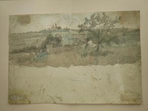 Il disegno, assieme agli oggetti schedati con NCTN: 0301971203 e 0301971205 , è incorniciato sotto vetro