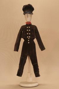 - NOTIZIE STORICO CRITICHE Il costume si completa con collo e polsi ed è stato realizzato per lo spettacolo "La Gran Via", adattamento a cura di Carlo II Colla della più famosa Zarzuela spagnola che appare nel repertorio della Compagnia Carlo Colla e Figli già dal 1904. Alle parti originali (tradotte in lingua italiana) si erano aggiunti brani, probabilmente tolti da altre operette degli stessi autori, che si ispiravano a problematiche sociali d¿epoca. Così è per il terzetto delle Vecchie Vie (Ospedale, Carceri, Ospizio) o per il terzetto fra la "signorina", il caporale ed il marmittone.