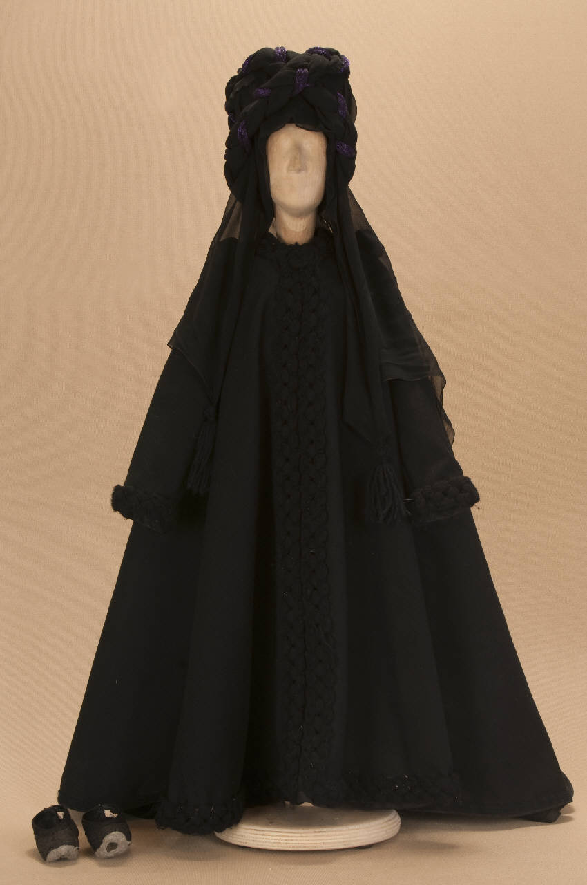Costume da borghese orientale composto da veste, mantello, velo, scarpe, cappello, turbante.