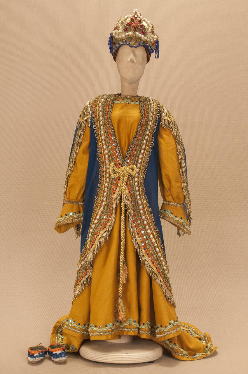 - NOTIZIE STORICO CRITICHE Il costume, confezionato in duplice copia per esigenze sceniche (GOR03491 e GOR03492), è stato realizzato per "La Lampada di Aladino", uno spettacolo che nasce come riduzione teatrale per marionette nel 1994. L¿argomento è tratto dalla fiaba "Aladino e la lampada meravigliosa", appendice della raccolta "Le Mille e Una Notte". Lo spettacolo di Eugenio Monti Colla, andato in scena in prima mondiale al Festival di Spoleto con musiche di Danilo Lorenzini, snoda il racconto in tredici quadri di ambientazione cinese come indicato nella fiaba d¿origine e narra l¿evoluzione del protagonista da giovinetto a uomo maturo attraverso vicende di carattere fantastico e simbolico.