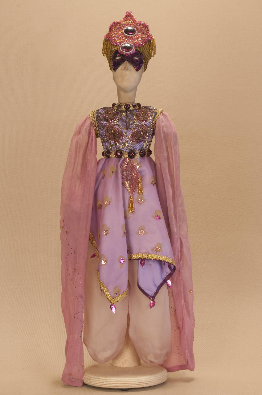 - NOTIZIE STORICO CRITICHE Il costume è stato realizzato per lo spettacolo "La Lampada di Aladino", che nasce come riduzione teatrale per marionette nel 1994. L¿argomento è tratto dalla fiaba "Aladino e la lampada meravigliosa", appendice della raccolta "Le Mille e Una Notte". Lo spettacolo di Eugenio Monti Colla, andato in scena in prima mondiale al Festival di Spoleto con musiche di Danilo Lorenzini, snoda il racconto in tredici quadri di ambientazione cinese come indicato nella fiaba d¿origine e narra l¿evoluzione del protagonista da giovinetto a uomo maturo attraverso vicende di carattere fantastico e simbolico.