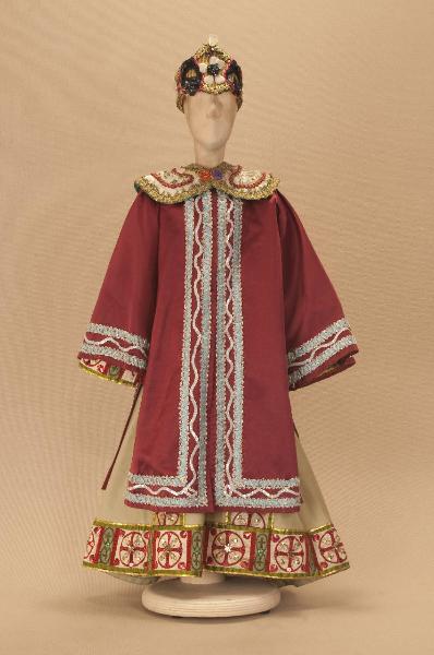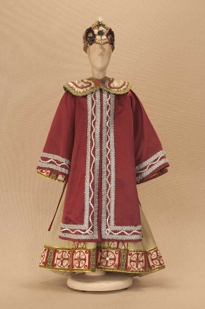 - NOTIZIE STORICO CRITICHE Si completa con scarpe. Il costume è stato realizzato per lo spettacolo "La Lampada di Aladino", che nasce come riduzione teatrale per marionette nel 1994. L¿argomento è tratto dalla fiaba "Aladino e la lampada meravigliosa", appendice della raccolta "Le Mille e Una Notte". Lo spettacolo di Eugenio Monti Colla, andato in scena in prima mondiale al Festival di Spoleto con musiche di Danilo Lorenzini, snoda il racconto in tredici quadri di ambientazione cinese come indicato nella fiaba d¿origine e narra l¿evoluzione del protagonista da giovinetto a uomo maturo attraverso vicende di carattere fantastico e simbolico.