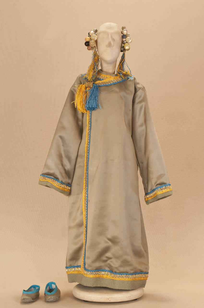 Livrea cinese da donna composta da sottoveste, veste, acconciatura e scarpe.