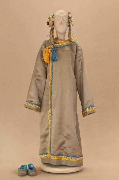 Livrea cinese da donna composta da sottoveste, veste, acconciatura e scarpe.