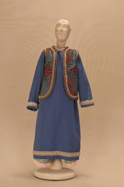 - NOTIZIE STORICO CRITICHE Si completa con scarpe. Il costume è stato realizzato per lo spettacolo "La Lampada di Aladino", che nasce come riduzione teatrale per marionette nel 1994. L¿argomento è tratto dalla fiaba "Aladino e la lampada meravigliosa", appendice della raccolta "Le Mille e Una Notte". Lo spettacolo di Eugenio Monti Colla, andato in scena in prima mondiale al Festival di Spoleto con musiche di Danilo Lorenzini, snoda il racconto in tredici quadri di ambientazione cinese come indicato nella fiaba d¿origine e narra l¿evoluzione del protagonista da giovinetto a uomo maturo attraverso vicende di carattere fantastico e simbolico.