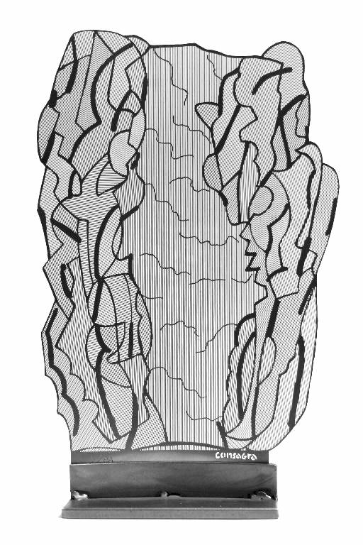 - NOTIZIE STORICO CRITICHE La "frontalità" di Consagra non vuol dire piattezza, perchè lo spazio vive, respira e si muove dietro il disegno traforato delle composizioni. Pietro Consagra ha perseguito la sublimazione di una leggerezza di pensiero attraverso una quasi impalpabilità di esecuzione: sono nate così le "Sottilissime", a partire dal 1966 e ripetute successivamente di quando in quando, con l'intento di offrire il minimo spessore alla perfetta evocazione di una presenza-assenza. Le Sottilissime, sottilissimi diaframmi, che propongono il miracolo di una vela d'acciaio che esiste e resiste al pari di un ectoplasma sospeso nel nulla. Le trame sembrano tracciate nell'aria, segni che incontrano e si incidono per minutissime linee parallele e per mancanze improvvise affinchè l'occhio vada oltre nei due sensi per una anticipazione di infinito. Il discorso di Consagra verte sempre su un rapporto percettivo e colloquiale tra l'opera e lo spazio che la ospita, tra l'opera e l'osservatore che entra con lei in una confidenza di sentimenti. Le Sottilissime si propongono con la loro indispensabilità di sipari per un'offerta all'immaginazione che cresce sui pensieri e sui disegni traforati nel nulla. (Luciano Caprile)