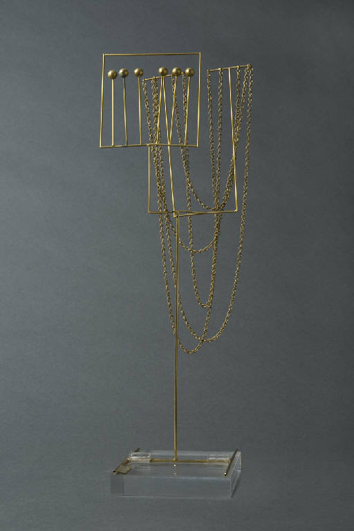 Struttura verticale con catenelle e 6 bracci culminanti in piccole sfere.
