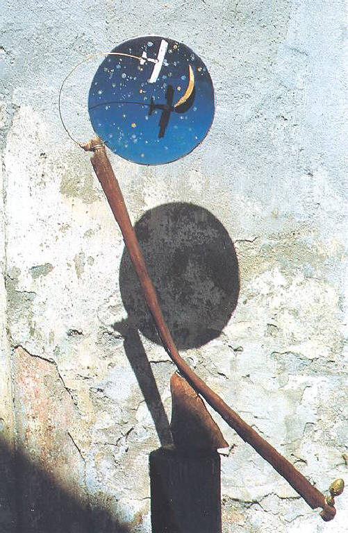 L'opera che fa parte della serie dei Ritratti satirici (i Mestieri), è formata da un'asta di reimpiego decorata ad un'estremità da una pigna in bronzo e a quella opposta da un clipeo con un cielo stellato e falce di luna, su cui si staglia un modellino d'aereo metallico.