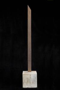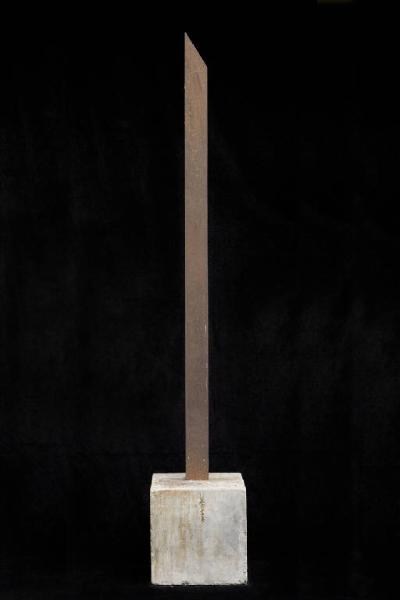 Su una base cubica di cemento armato si imposta un elemento in ferro.
