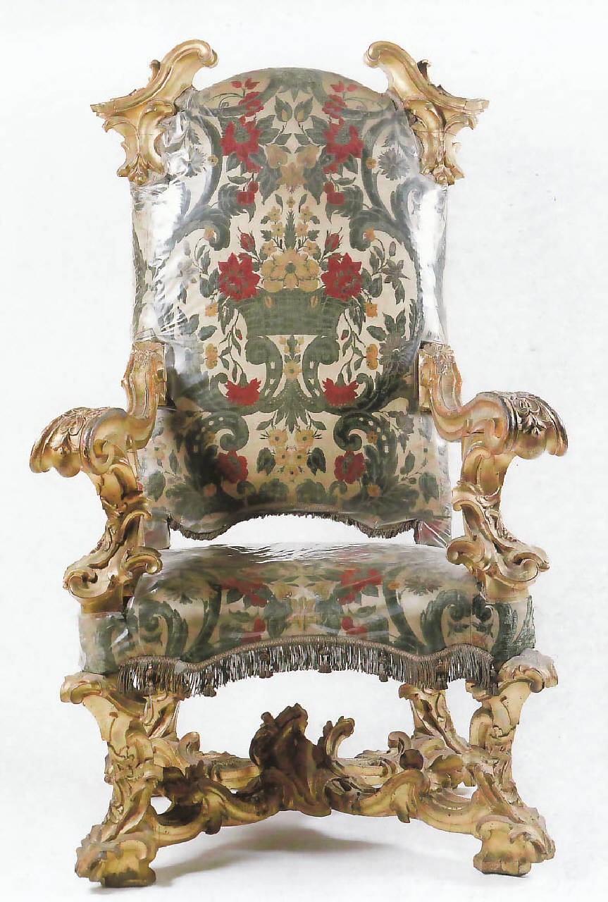 - NOTIZIE STORICO CRITICHE Assegnata da Gilda Rosa ad anonimi artigiani bolognesi attivi nel XVII secolo, la poltrona presenta una ricca decorazione ad intaglio formata da volute e cartouche che richiama alla mente gli ornati eseguiti dai decoratori e dagli intagliatori romani durante la prima metà del Settecento.