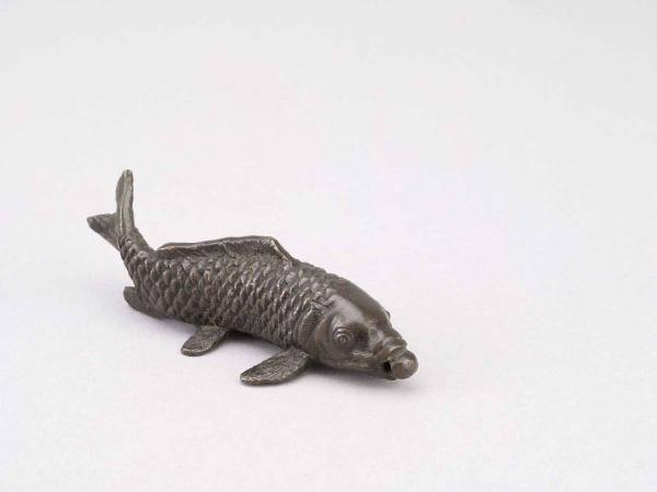 Oggetto ornamentale (okimono) a foggia di carpa con una perla in bocca.