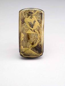 - NOTIZIE STORICO CRITICHE Gli oggetti in tartaruga (bekko) erano realizzati sostanzialmente per l'esportazione verso l'Occidente: erano decorati con soggetti convenzionali che attraessero l'attenzione degli acquirenti. Un esemplare analogo (cm. 12,6 x 6,8 x 2,5), con una decorazione di falco su pino e paesaggio con uccelli, è conservato nel Museo Chiossone di Genova (Failla 1996, n. 104); un altro simile è nel Museo Garda di Ivrea (Koyama - Vitali 1994, pp. 100-101, n. 49).