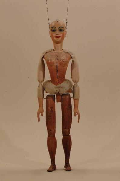 Corpo normale monoblocco; testa con bocca e occhi fissi, presenta un anello per l'aggancio dell'antico ferro centrale per il movimento a pugnetto; mani mobili con dita separate; piedi fissi con piombatura; bilancino originale a croce metodo Holden