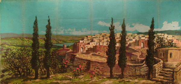 Scenografia in carta dipinta ad acqua e fortezzata con strisce di tela, composta da un fondale.