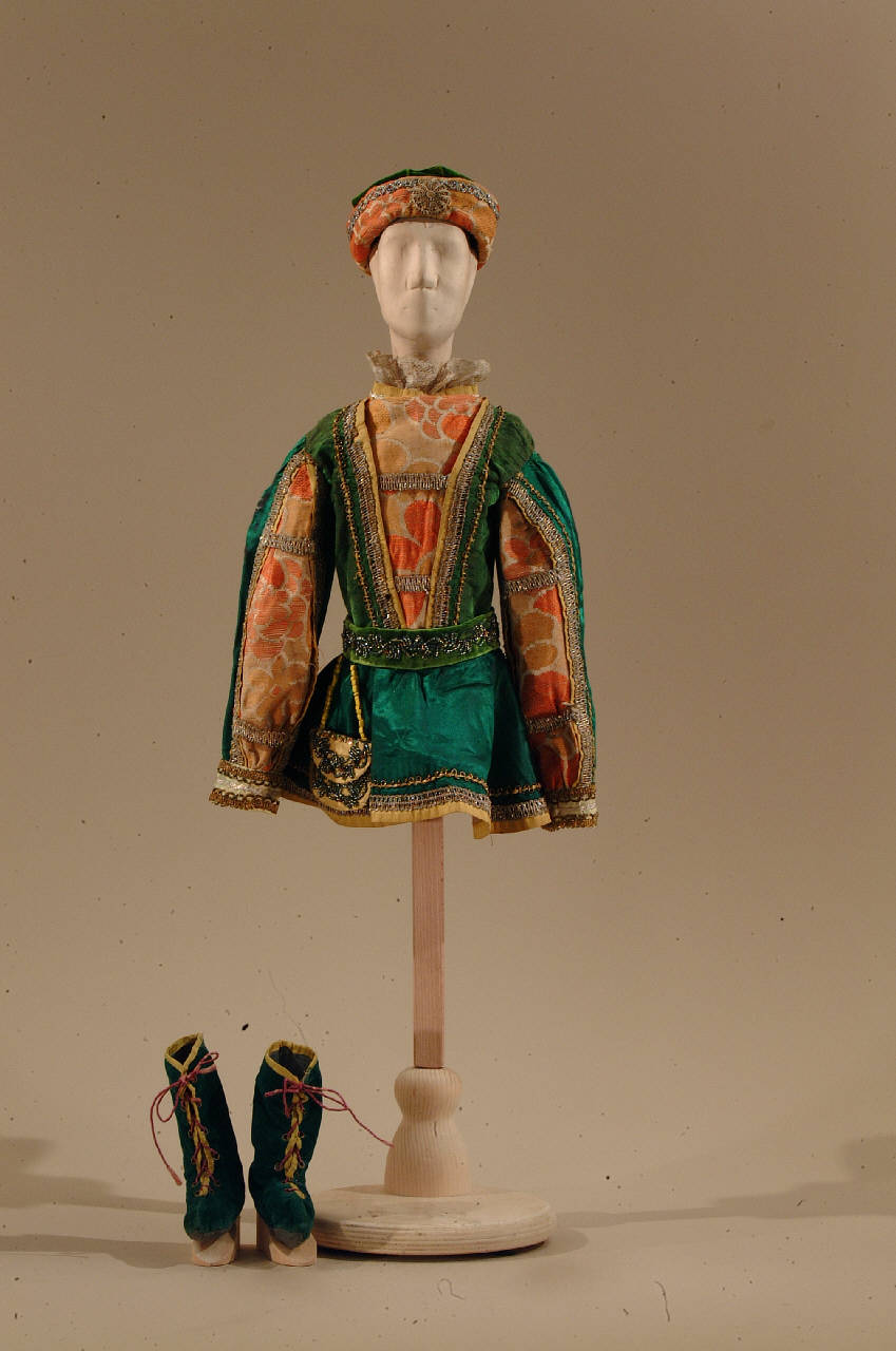 Costume per apricorteo di foggia rinascimentale composto da veste, cintura, scarpe, cappello