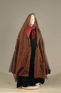 Costume popolano del '400 costituito da veste, mantello, fazzoletto collo, velo, scarpe