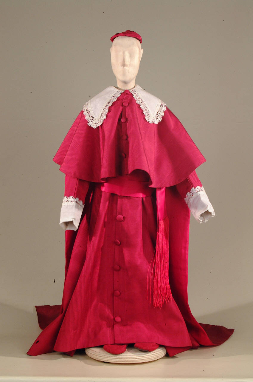 Costume di religioso composto da veste, mozzetta, mantello, fascia, zucchetto, scarpe.