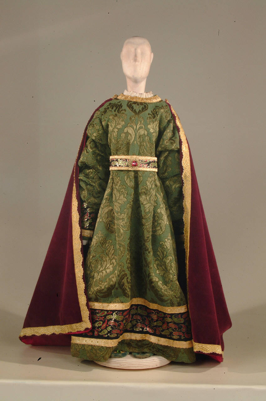 Costume di nobile del '400 costituito da veste, scarpe, manto