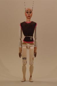 Corpo normale tagliato in vita con doppio anello e tessuto; testa con bocca mobile e occhi fissi; mani fisse con dita separate; piedi fissi con piombatura; bilancino originale a croce metodo Holden