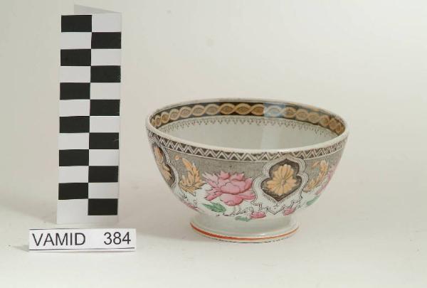- NOTIZIE STORICO CRITICHE La mancanza del marchio impedisce di risalire con esattezza alla ditta produttrice. L'oggetto è comunque attribuibile ad una generica manifattura lavenese. La ciotola è decorata con transfer marrone, applicato sottosmalto, e colorata a mano sopra e sottosmalto in verde, arancio a lustro e rosa.