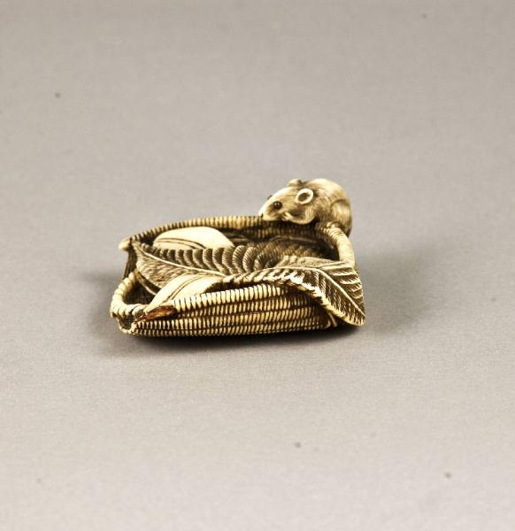 Il piccolo topo (nezumi) sta posato sul bordo di una paletta per la cernita che contiene una shimenawa, cioè una sorta di corda utilizzata come decoro durante i festeggiamenti per il Capodanno; a questa sono attaccate fronde della felce urajiro (Gleichenia glauca) e foglie di yuzuriha (Daphniphyllum macropodum). Poiché le foglie di queste due piante non cadono prima che le loro sostitute siano cresciute, esse simboleggiano il padre che non muore prima che il figlio sia diventato adulto. La felce, inoltre, rappresenta vigore, salute e una progenie che aumenta e si sviluppa come le sue foglie.